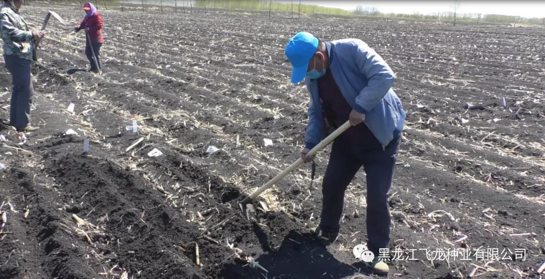 四月末開始雜交圃的小區(qū)區(qū)劃,插標(biāo)簽,分發(fā)種子,人工播種等工作。由于科研育種要求更加嚴(yán)格精細(xì),因此采用人工擺種的方式進(jìn)行播種。科研人員使用鎬頭開溝,人工擺種后覆土鎮(zhèn)壓,此項(xiàng)工作已于5月16日完成。