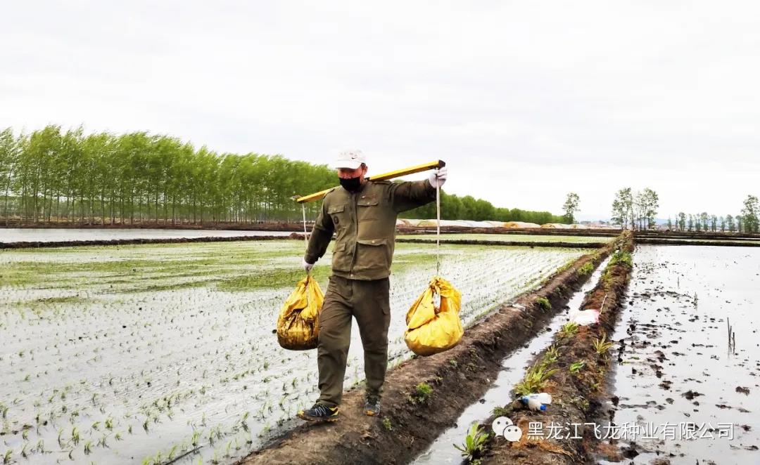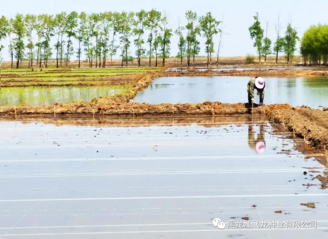 飛龍種業(yè)水稻試驗站面積10畝,15人的隊伍,在經(jīng)過前期的苗床選地、整地作廂、種子處理以及肥料管理等育秧工作后,現(xiàn)階段主要工作為秧苗移栽。